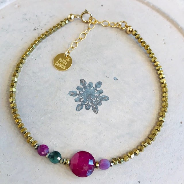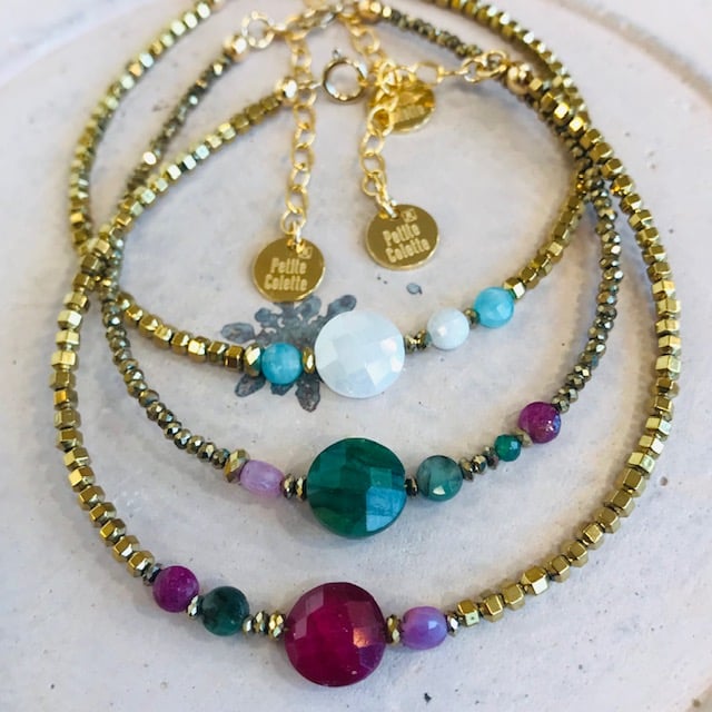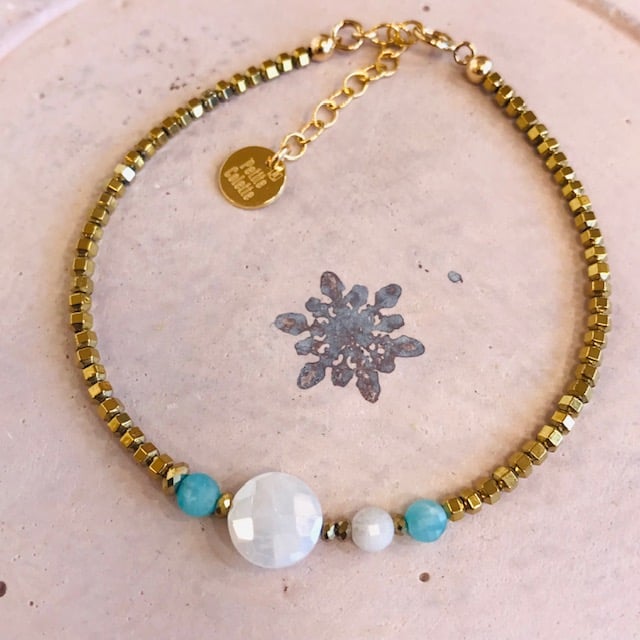 Bracelets en pierres naturelles de haute qualité entourée d'hématites dorées.
