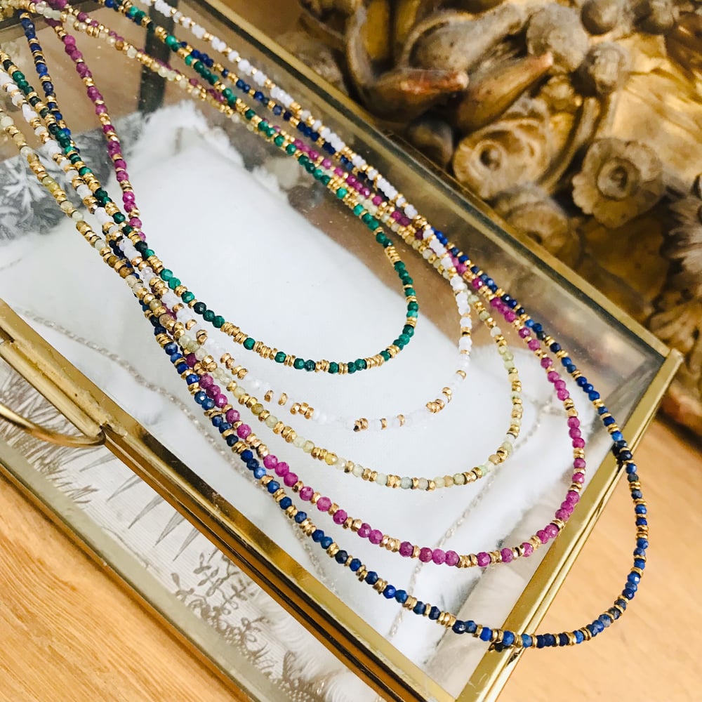 La finition Gold Filled 14 KT est une technique d’excellence : le plaquage correspond à 1/20e total du produit en or 14KT. Cette finition est très utilisée aux Etats-Unis. Une certification 1/20e est présente sur les éléments le permettant (fermoir, collier…)