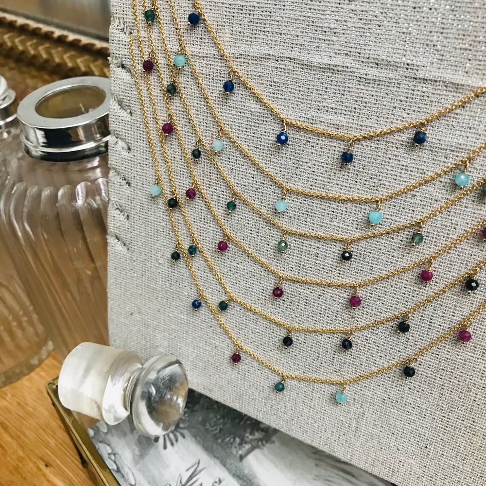 Collier avec chaine en Gold Filled 14kT et perles naturelles et semi-précieuses